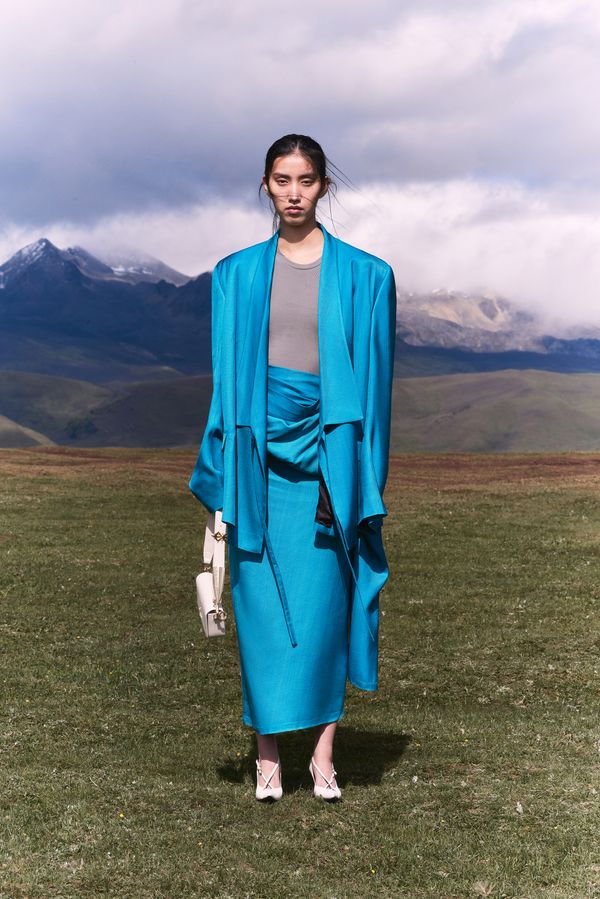 The looks of this collection are photographed in a pasturing area in a Tibetan autonomous prefecture. With the clothing echoing its place of inspiration, the style of the whole collection is presented to its greatest extent.